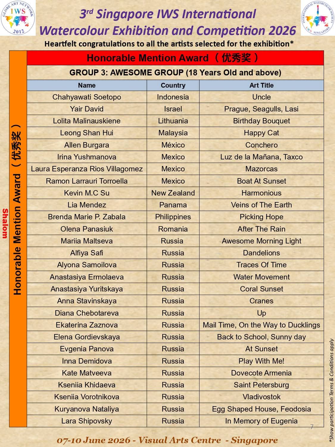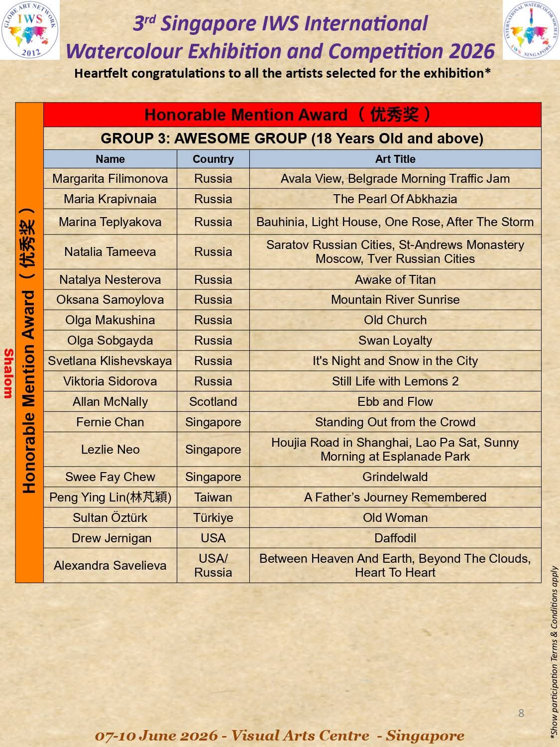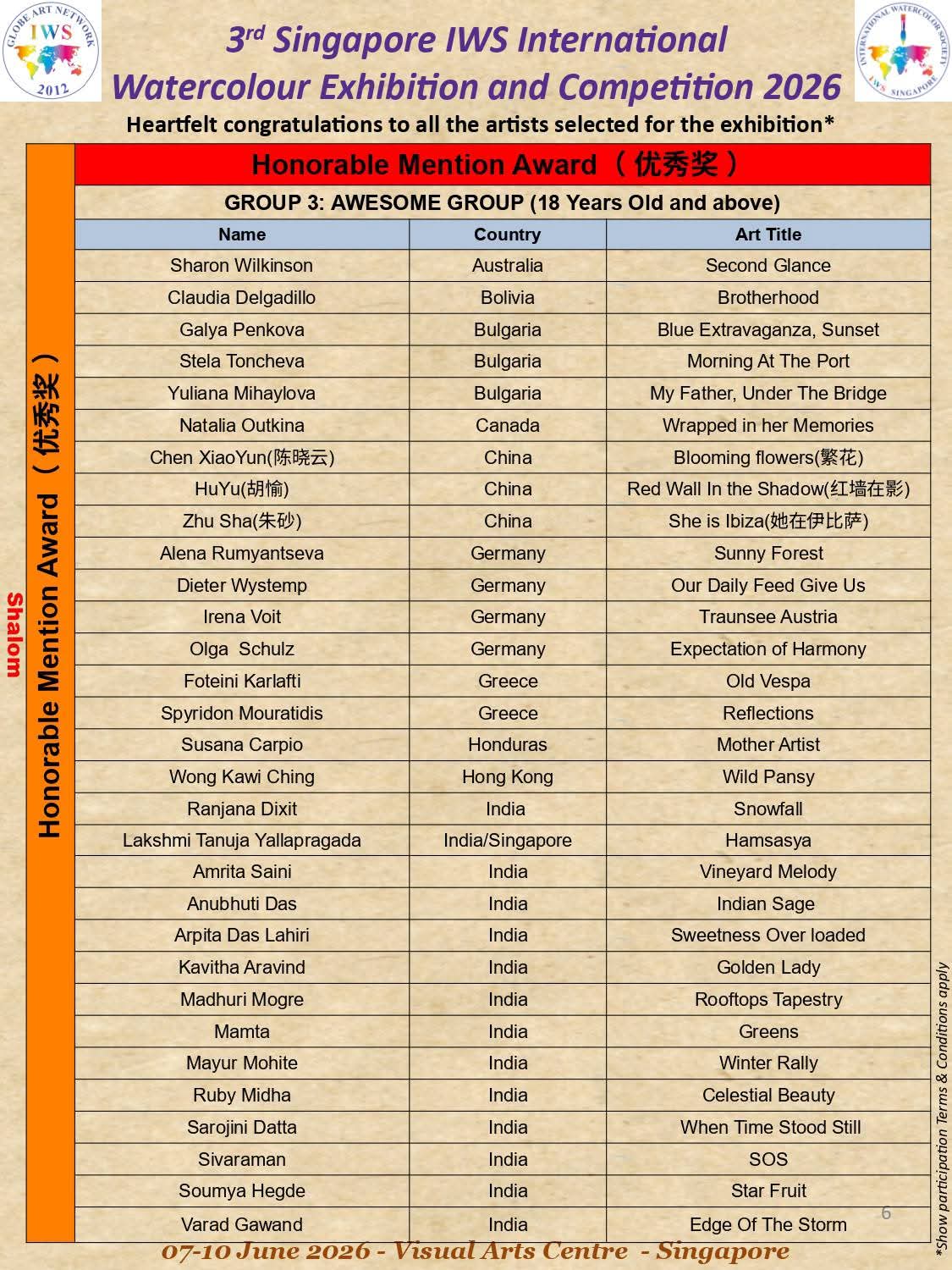 3rd IWS Singapore International Watercolor Exhibition and Competitin 2026