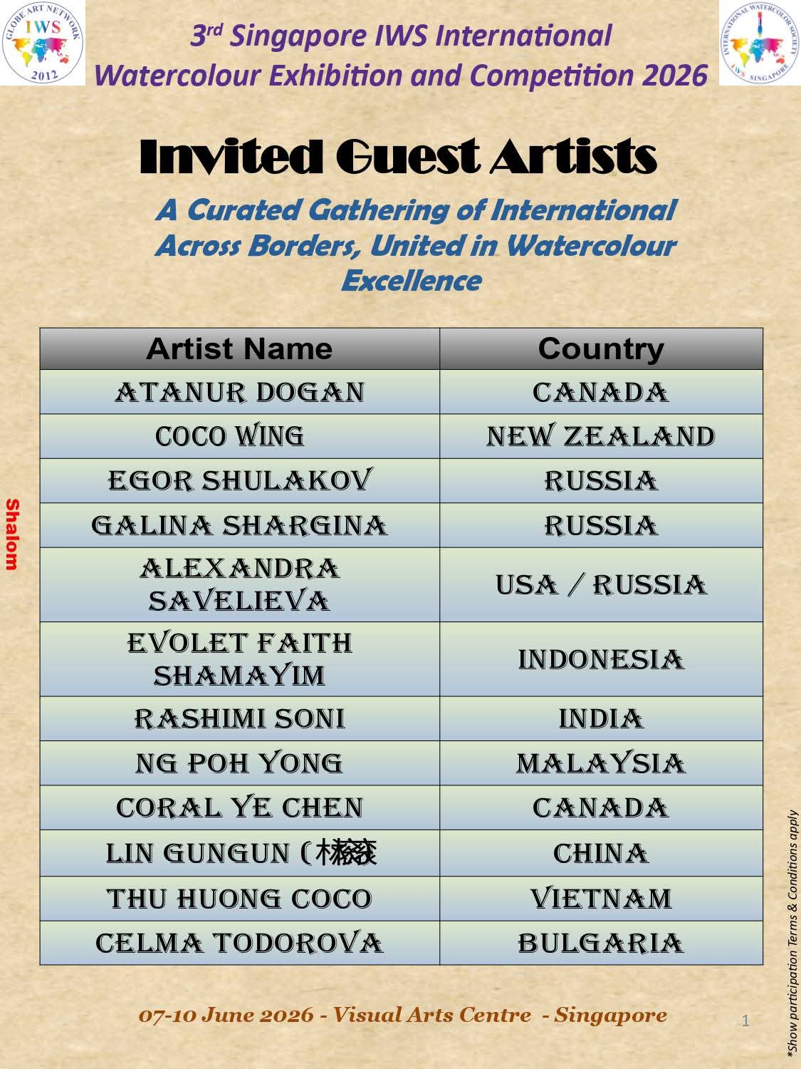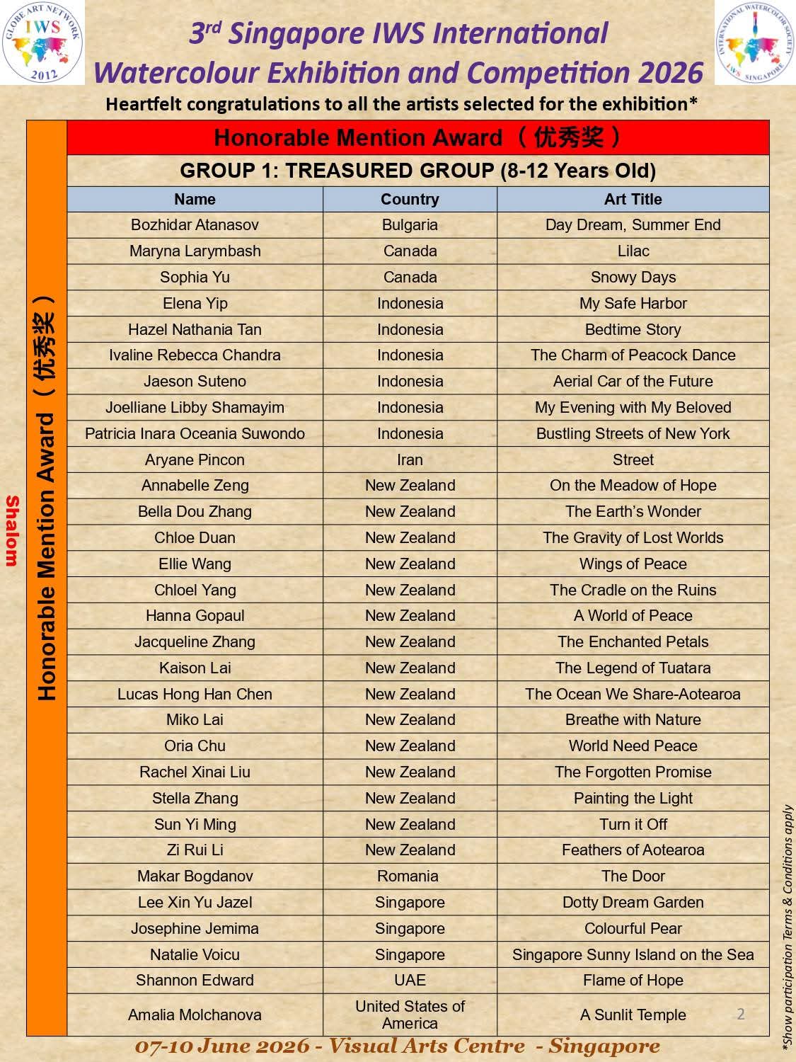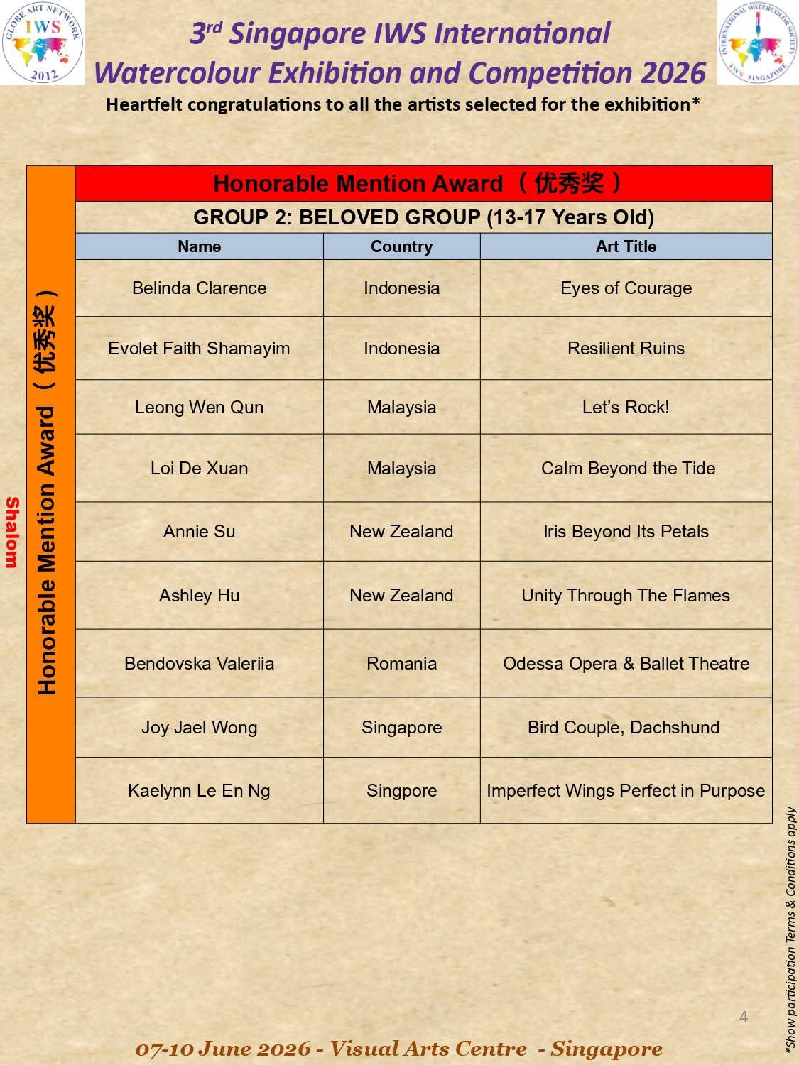 3rd IWS Singapore International Watercolor Exhibition and Competitin 2026